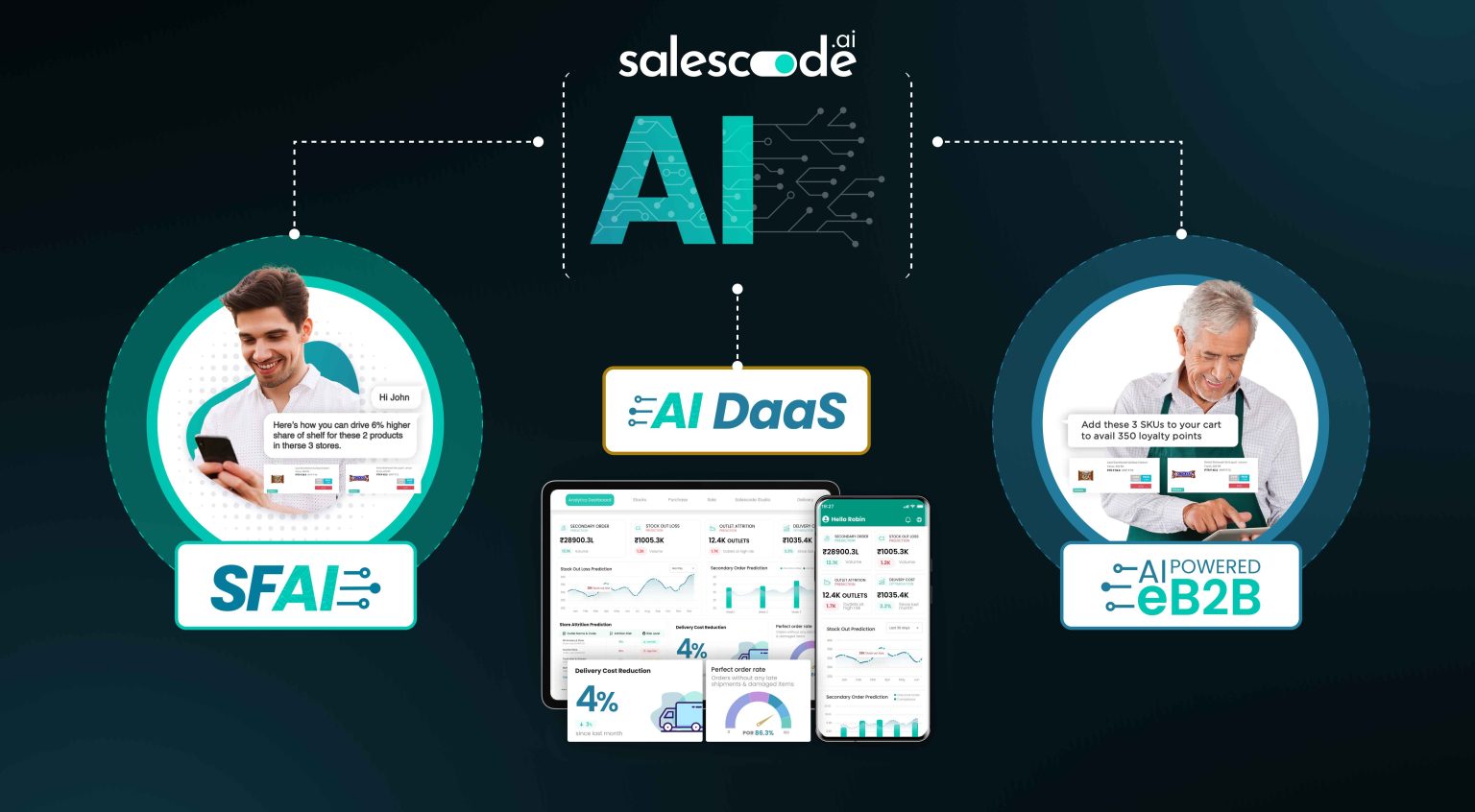 Operating at a scale of 3M+ transacting Users with promotions, discounts, loyalty programs and AI/ML Predictions, SalesCode Platform is first Sales-Tech Platform with NextGen SFA, NextGen eB2B, and NextGen DMS, all on one platform, specially designed for large global CPG Companies.