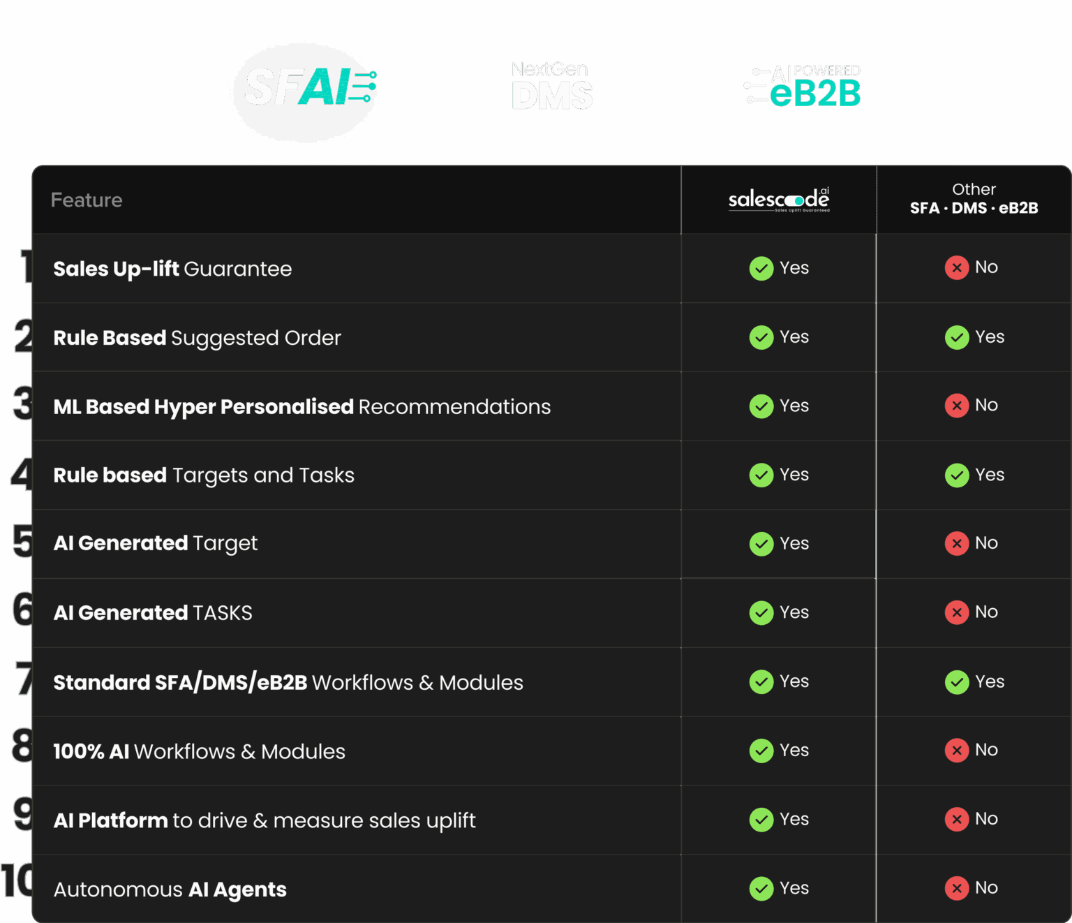 The challenge is open till 31st August 2025. If any organization is able to demonstrate, through an independent audit by a Big 4 firm, that their platform outperforms SalesCode across the defined parameters, SalesCode will pay $1 million and cover 100% of the audit cost. This initiative is intended as a good-faith, objective comparison across transparent evaluation metrics.