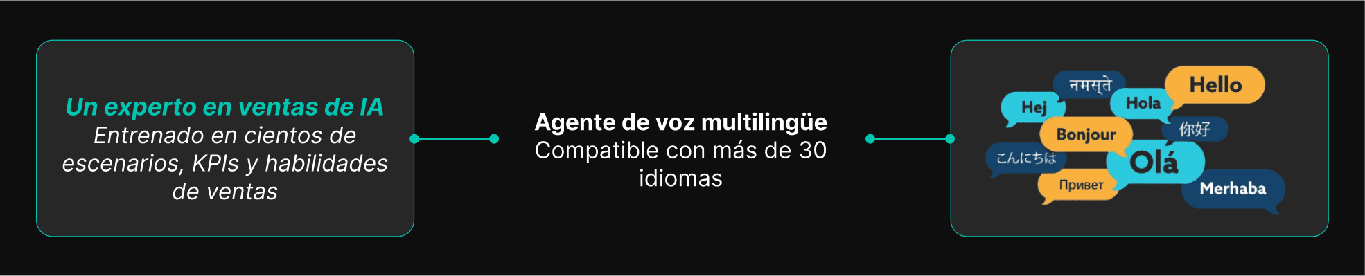Entrenado en todo el conocimiento de ventas, habilidades técnicas, y contenido y datos específicos referentes a la inteligencia de la organización. Imagina replicar las habilidades de tus mejores vendedores y desplegarlos para impulsar mayores ventas y distribución de productos, a gran escala y sin descanso.