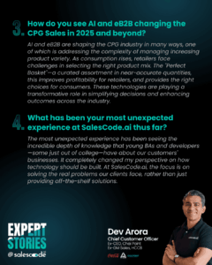In this post, Dev shares his perspective on why he chose to transition to the Salestech industry and how he envisions the CPG industry evolving as AI and eB2B continue to disrupt the entire sales and RTM landscape.