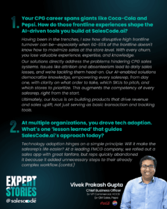 In this post, he shares his insights on how his frontline experiences help shape the NextGen AI-powered Sales and RTM platform we’re building and how AI and eB2B continue to disrupt the CPG sales landscape.