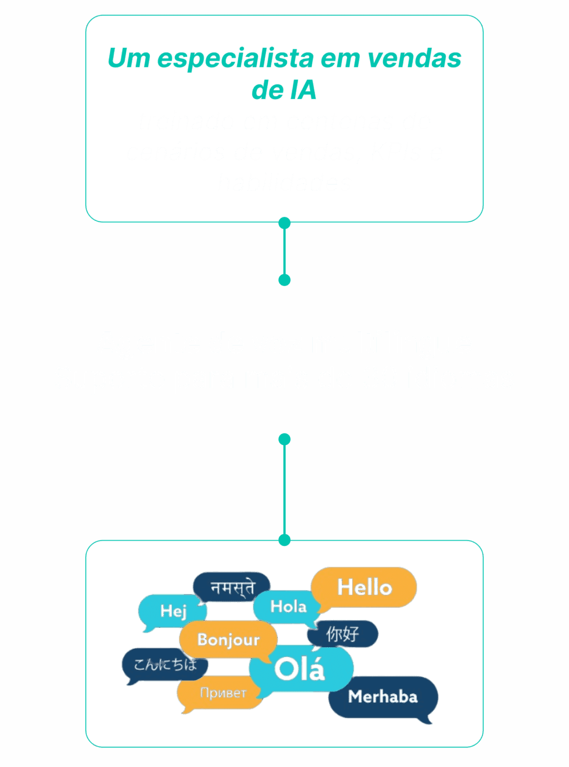 Treinado com todo o conhecimento de vendas, técnicas, conteúdo e dados específicos da organização. Imagine replicar seus melhores representantes de vendas e implantá-los para impulsionar as vendas e a distribuição, em larga escala e sem pausa.
